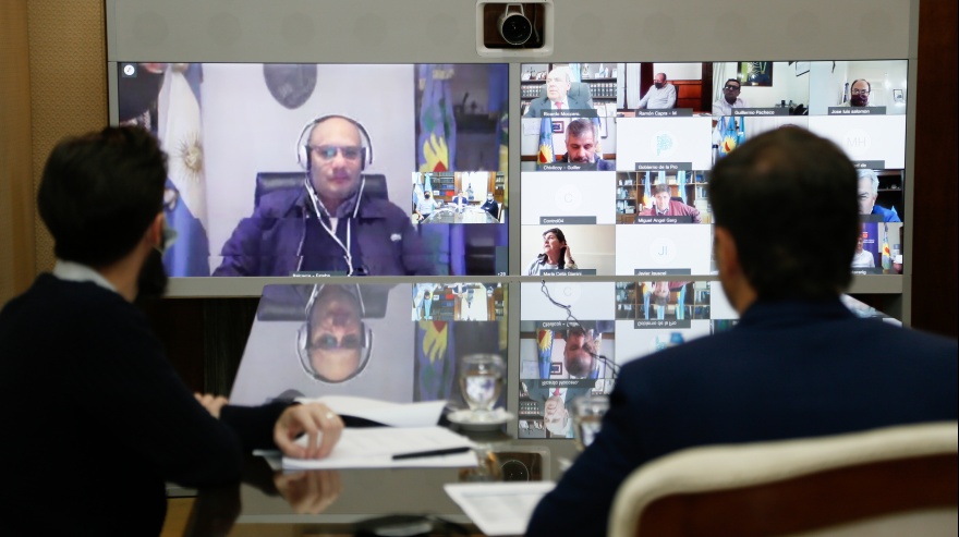 Estuvo acompañado además por el jefe de Gabinete, Carlos Bianco, y a través de una videoconferencia participaron los intendentes de los municipios donde se realizarán los proyectos.