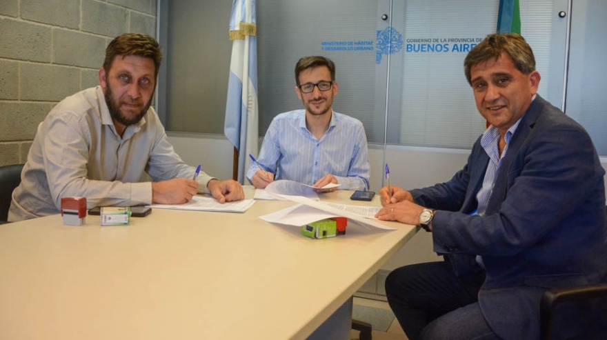 El intendente Juan José Fioramonti firmó el convenio con el ministro de Hábitat y Desarrollo Urbano de la Provincia, Agustín Simone.