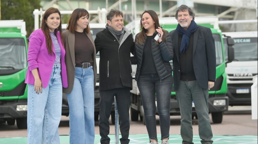 En total se entregaron 58 camiones para la gestión de residuos que forman parte del programa, 23 combis 0km para traslados escolares y 102 computadoras para estudiantes de Centros de Formación Integral y escuelas de Educación Especial.