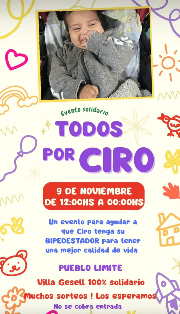 El próximo 9 de noviembre, desde el mediodía hasta la medianoche, el reconocido complejo Pueblo Límite será sede de un gran evento solidario destinado a ayudar a Ciro Bachini, un pequeño geselino de apenas un año y ocho meses que enfrenta con valentía las secuelas de una parálisis cerebral infantil.