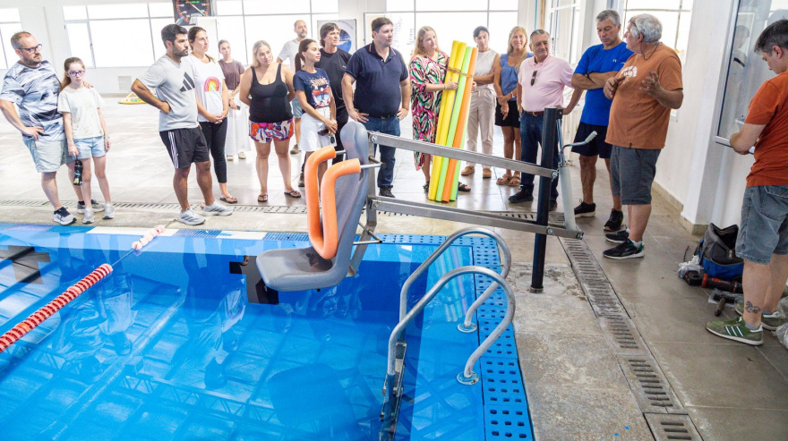 Las Flores: instalan elevador hidráulico en la pileta climatizada