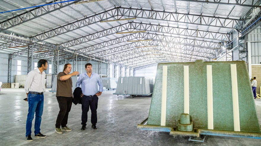 Durante la jornada, estuvieron en el predio de la firma Bull Plastic Composite SAS, fabricante de piletas de fibra de vidrio. Allí las autoridades pudieron interiorizarse sobre la actividad y dialogaron con su representante, Martín Alejandro Valdi, para conocer de primera mano las oportunidades y desafíos que atraviesa el sector.