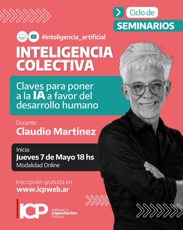 Denominada “Inteligencia colectiva. Claves para poner a la IA a favor del desarrollo humano”, la iniciativa se desarrollará bajo modalidad virtual con inscripción previa en https://www.icpweb.ar/ los jueves de mayo a las 18 horas a partir del jueves 7. Las clases durarán dos horas y el programa puede consultarse en la misma página web.